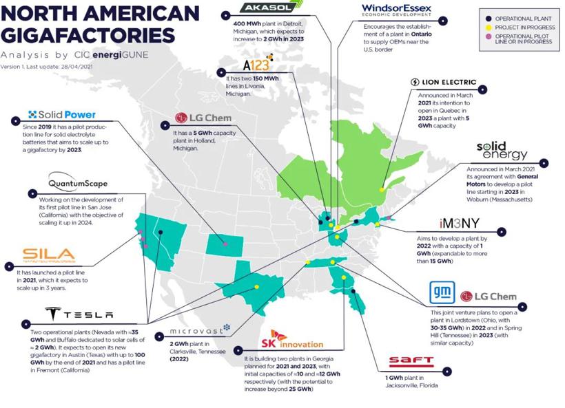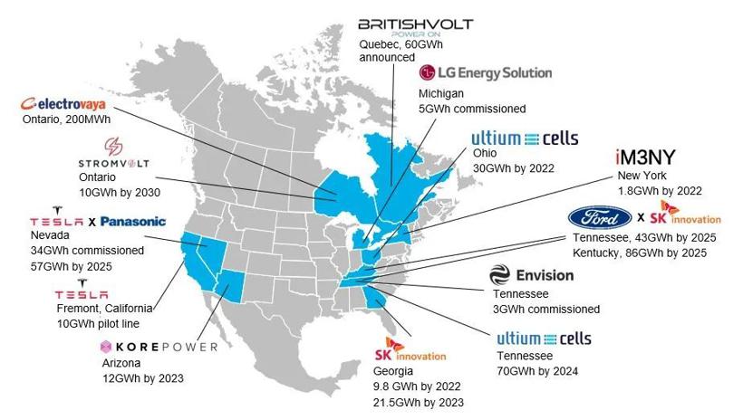 北美正在成为全球电池企业和车企竞逐的热土。