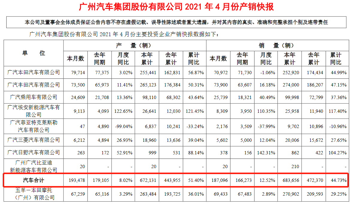 广汽集团4月销量:合资两极分化,自主高歌猛进