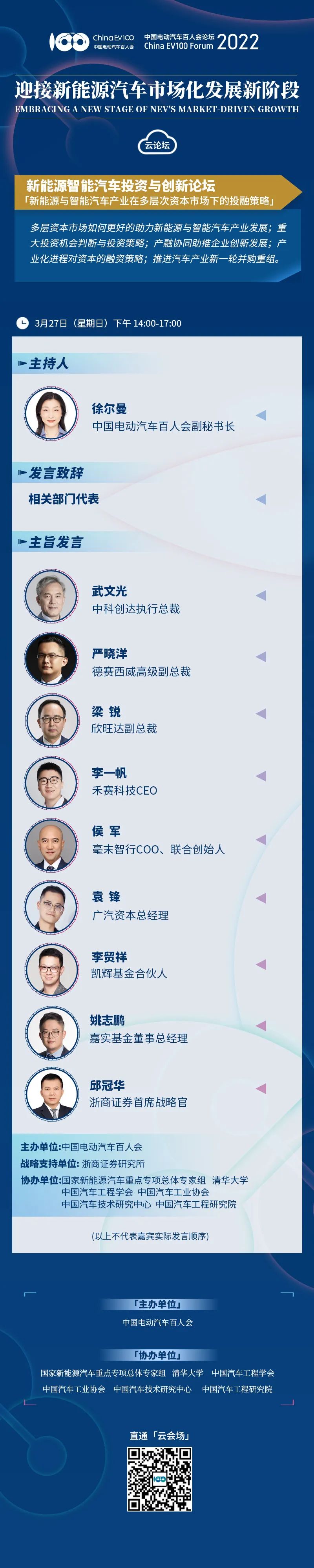 3月25-27日,中国电动汽车百人会论坛(2022)即将召开。遵循目前防疫管控要求,本届大会将采取“云论坛”方式在线举办。