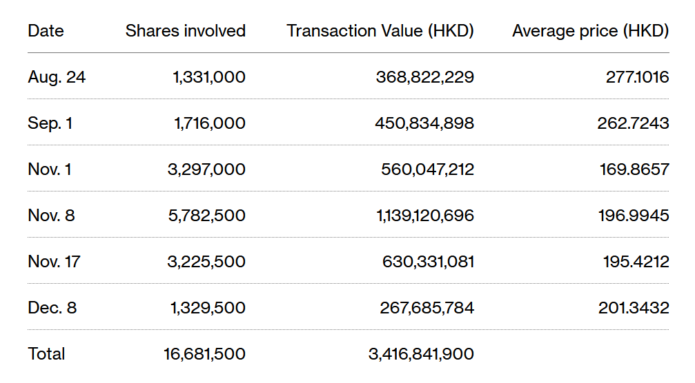 车域元宇宙讯 据外媒报道,根据12月13日提交给香港证券交易所的文件,沃伦·巴菲特旗下的投资公司伯克希尔·哈撒韦公司又出售了133万股比亚迪在香港上市的股票,价值为2.6769亿港元(合3,443万美元)。文件显示,此次出售使伯克希尔·哈撒韦公司在比亚迪已发行H股中的持股比例从15.07%进一步降至14.95%。